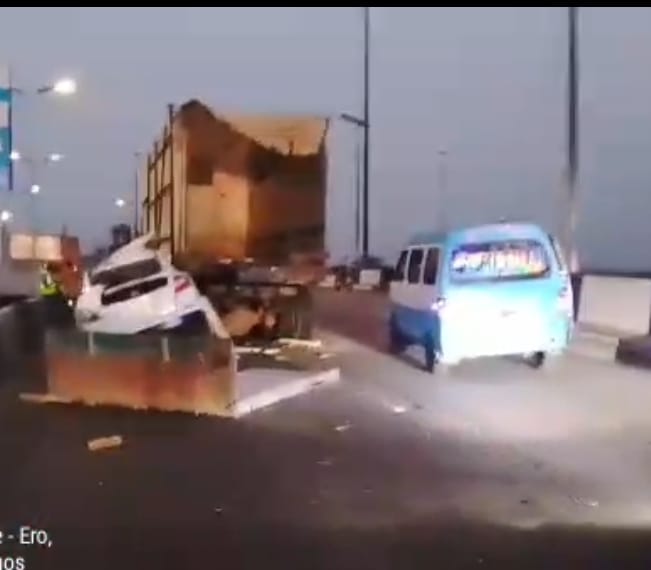 Preliminary findings revealed that a male motorist, suspected to be heavily intoxicated, was driving a Honda Jeep with registration number FKJ 562 JF at an excessive and uncontrollable speed when he rammed into the rear of a moving Scania truck while descending the bridge.