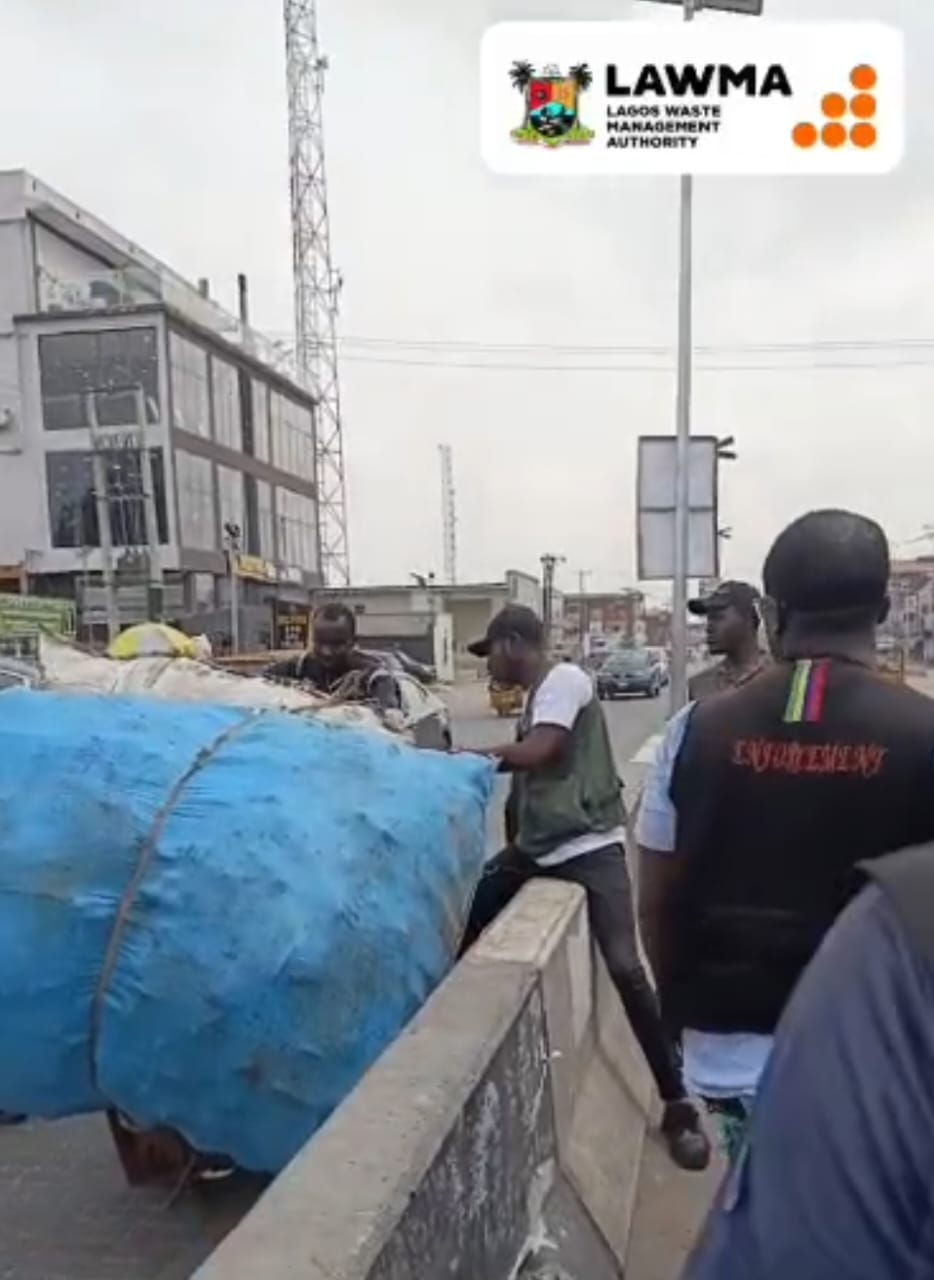 The Lagos State Waste Management Authority (LAWMA) has arrested a notorious miscreant and a cart pusher for violating sanitation laws at Alayabiagba Market in Ajegunle.